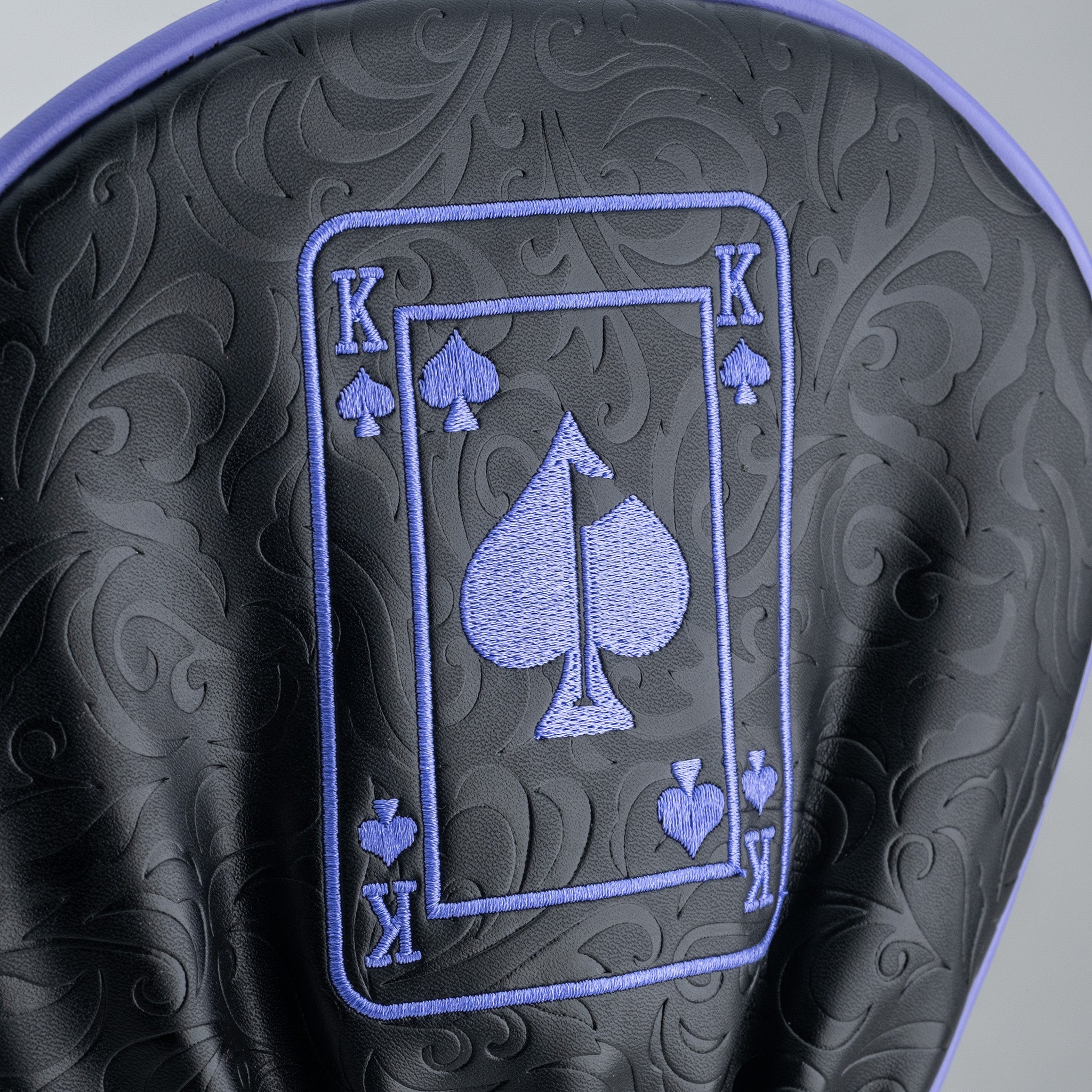Black and gold King of Spades driver cover with intricate design and plush texture.