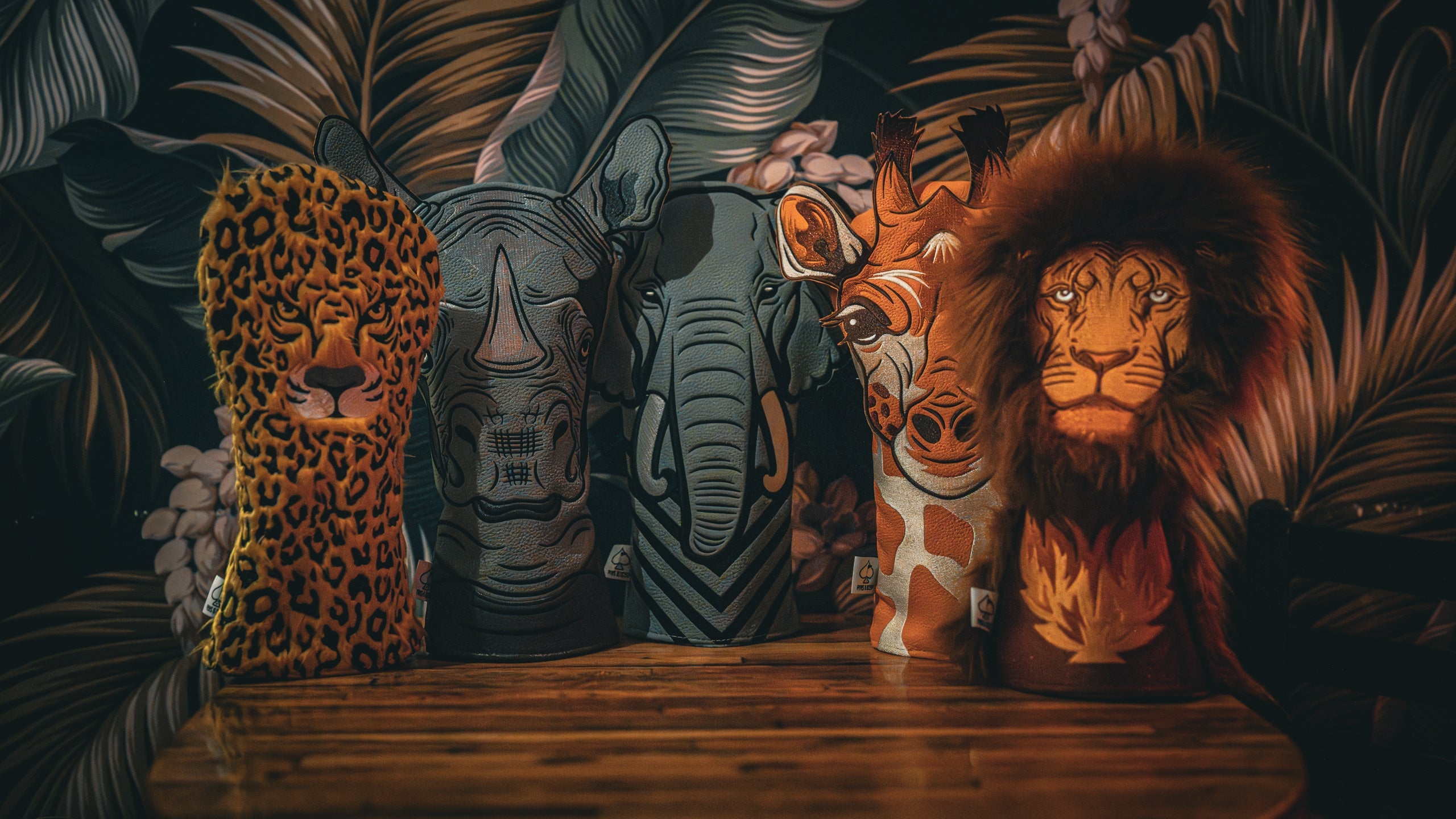 Elephant driver cover featuring a realistic elephant design, perfect for golf club protection.