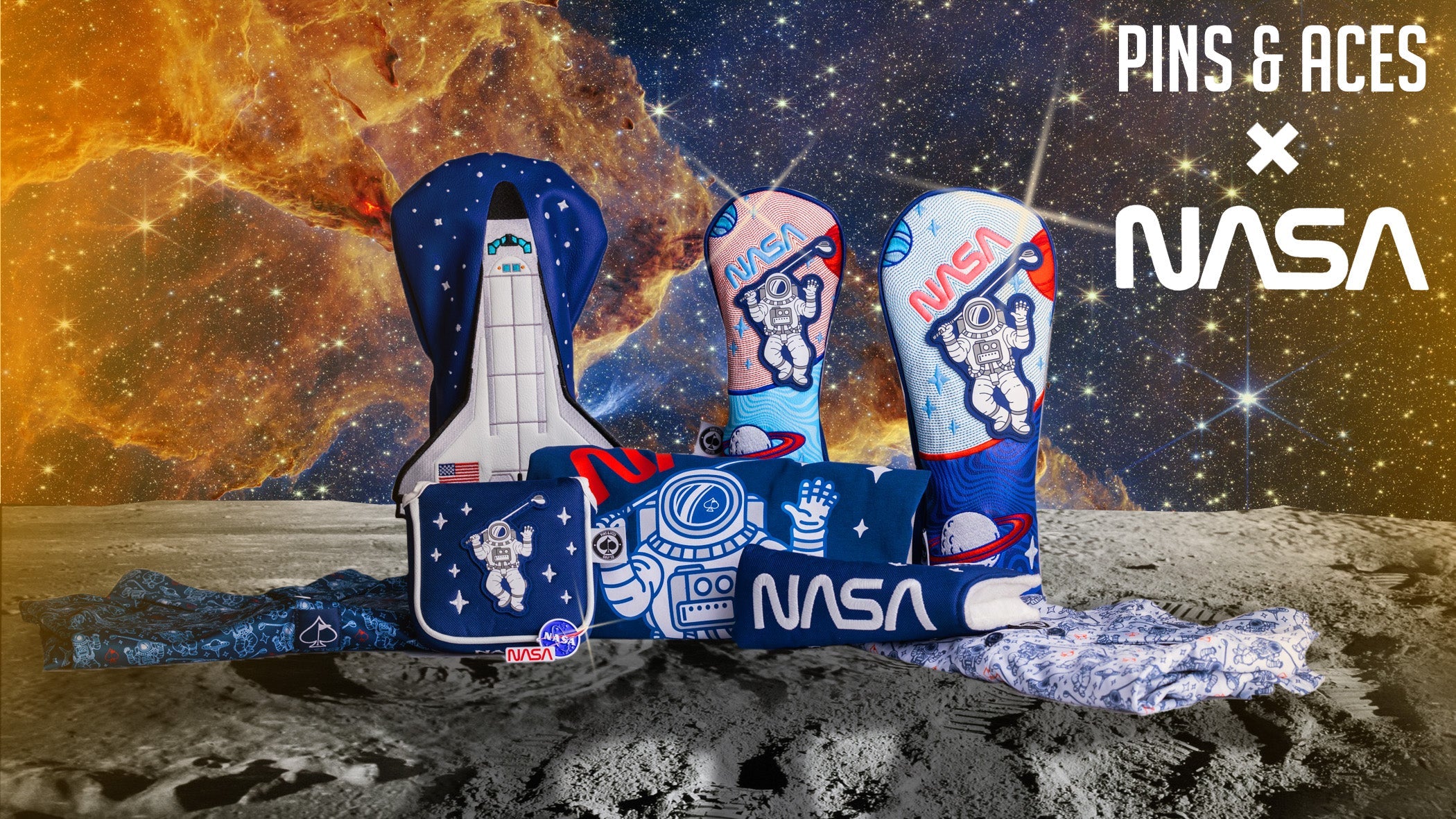 Pins & Aces x NASA 2.0 is here with a fairway wood head cover with a captivating custom design. Handmade and hand-sewn, this head cover features unparalleled quality, utilizing a distinctive synthetic leather that reduces fading, cracking, ripping, or discoloration. The bold, innovative PVC patch features a space-walking astronaut wielding a golf club makes this head cover a true conversation starter on the golf course.